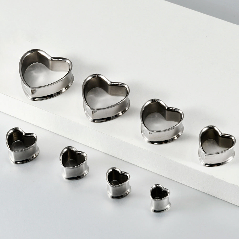 AKAK Heart Chain Stainless Steel Ear Gauge Tunnel 2Pcs