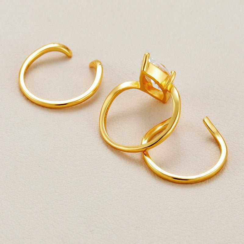 3 Carat Marquise - Cut S925 Moissanite Stacking Ring Set - AKAK BODYJEWELRY - ear - tunnel